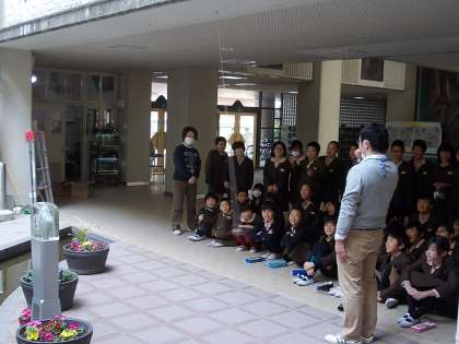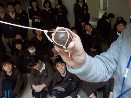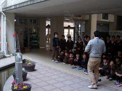 光庭から歓声が聞こえてきました。のぞいてみると。。。。5年生の理科の学習でした。おもりの重さを変えたり、糸の長さを変えたり、ふり幅を変えたりして、ふりこの様子を実験しました。不思議だなぁ。。なんでなん。。。と感じるところから科学への興味関心が生まれてきます。当たり前のことに不思議を感じる力をつけていきたいです。