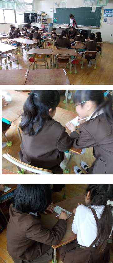 3時間目に地域児童会がありました。ここで、1年生も登校班が確定しました。地域児童会の教室では、同じ班の上級生が優しく個票に記入している姿が微笑ましかったです。