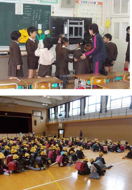 5時間目に全員講堂に集合し、登校班で集団下校しました。