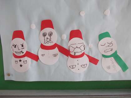 左の下には、おこっている雪だるまくんや、いねむりをしている雪だるまくんもいます。