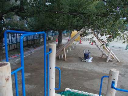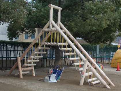 土を戻して整地しました。登ってみると、クスノキの枝がすぐ近くにあって、ちょっぴりうれしくなります。