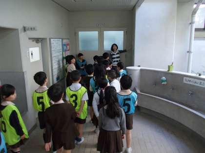 明日、2年生が1年生に対して学校を案内します。今日は、2年生がその練習をしていました。