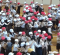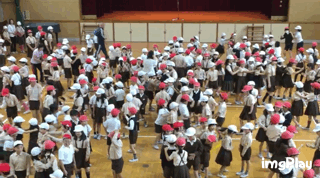 まだ、なかよし班(昨年までの「たてわり班」のこと)ができていないので、今日は集会委員会主導で「じゃんけん列車」をしました。