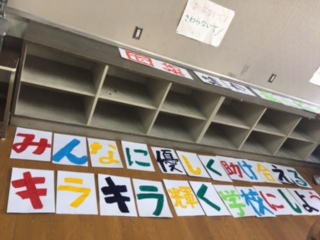 今日6時間目は、代表委員会・委員会の時間でした。代表委員会では、先日、全校児童の意見を集めて決定した「児童会目標」を掲示できるようにと活動をしました。それぞれに手分けして、さまざまな色のポスターカラーを用いて、画用紙に太い字で一文字ずつかいていきました。最後に、並べてみると見事に「児童会目標」が完成しました。
