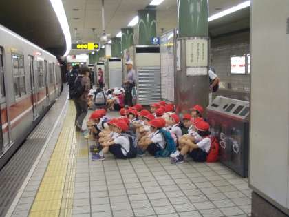 大阪城公園に向けて出発です。2列にきれいに並んで歩いています。