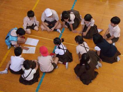 メンバーの自己紹介をしたあと、7月の土曜授業でおこなわれる「中津子どものつどい」でする遊びの相談をしました。