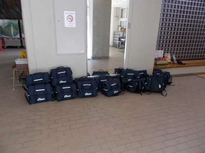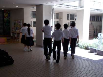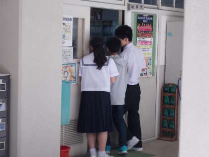 バナナホールの前にきちんとカバンが並べられてあるのは、さすが中津の卒業生ですね。明日のテストも頑張れよ。