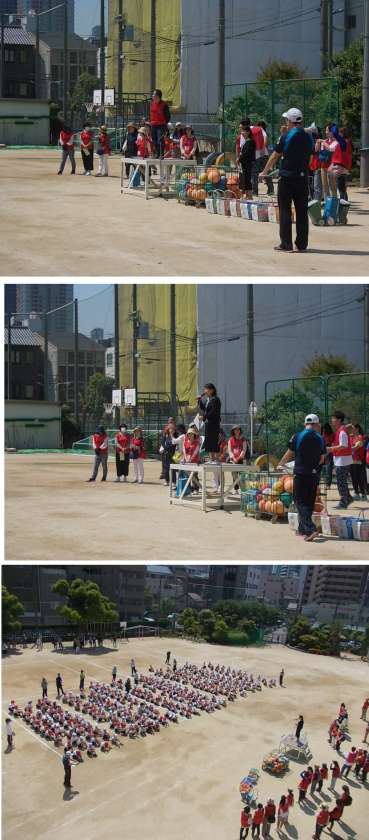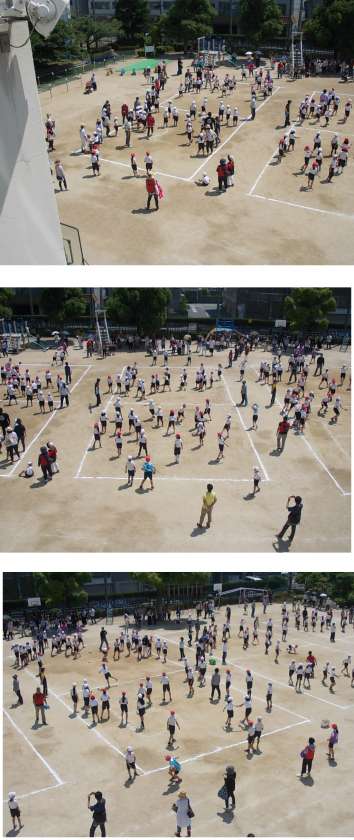 大前PTA会長のあいさつ、校長先生のあいさつ、体操のあと、各コートに分かれて学年ごとに対戦しました。