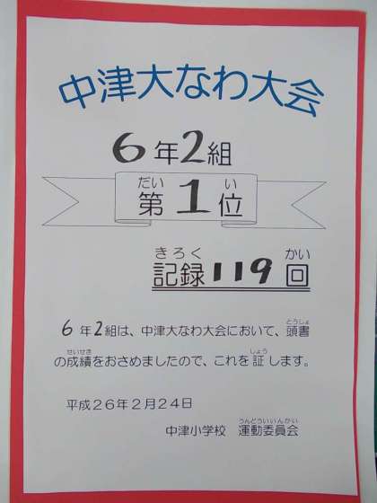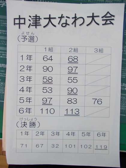 大なわ大会 結果と表彰