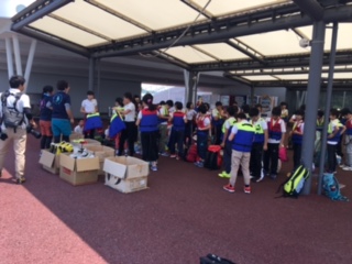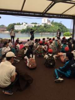 みんなバスにそれほど酔うことなく鳥羽に到着しました。遊民クラブの方に挨拶して、ライフジャケットを着用しました。今から菅島にチャーター船で渡ります。
