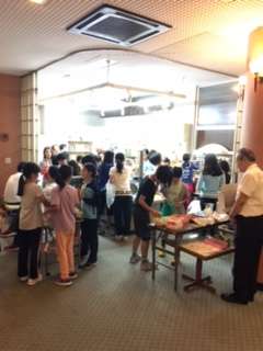 待ちに待ったお土産タイムです。男子は、あっさり短時間で済んでしまい、写真が撮れずにすみません。しかし、女子は衰えることのないパワーで家族や親戚に熱心にお土産を選んでいました。小さなタコやイルカのぬいぐるみやストラップが大人気でした。