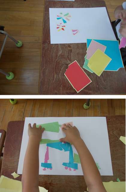 やぶいたかたちをくふうして作りました。まだまだ途中ですが、かわいくできています。