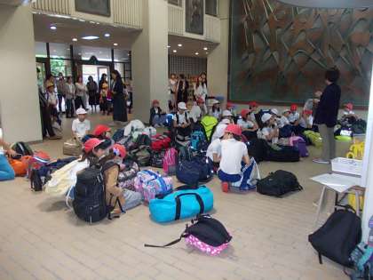 45人全員出席です。出発式では、付き添いの先生方の紹介がありました。