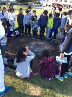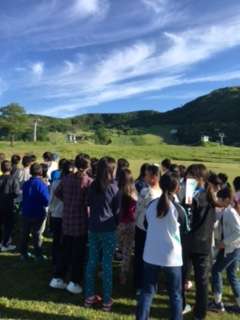 綺麗に見渡せる高原の景色を観察したり、昨日のキャンプファイヤーの星型の後を見に行きました。