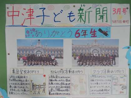 「ありがとう6年生」特集ができました。今年度の最終号です。「在校生のみなさんへ」という6年生からのメッセージも送られました。
