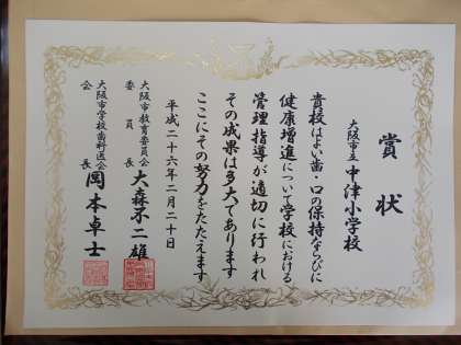 今年度も、教育委員会から、「よい歯・口」の表彰を受けました。