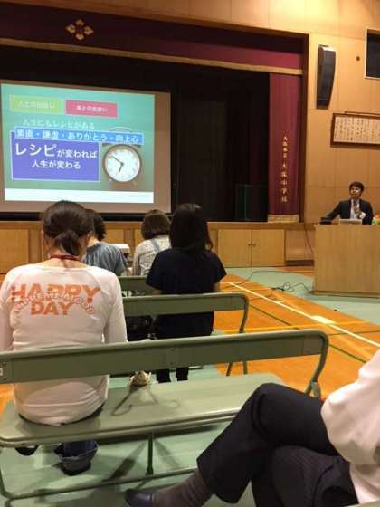 昨晩、大淀中で中学校区の保護者や地域の方々対象に研修会が開催されました。「一瞬の感動を人生のきっかけに」というテーマで、金蘭会高等学校の特任講師の的場先生のお話を聞かせていただきました。ご自身の生い立ちを交えながら、夢を持ち信念を貫くことの大事さと褒める子育ての素晴らしさを熱く語っていただきました。夜遅い時間に多数参加してくださった中津小学校の保護者の皆さん、ありがとうございました。