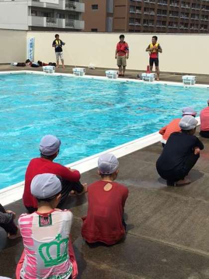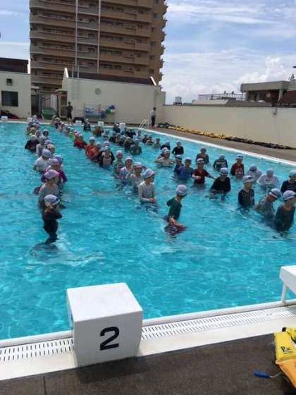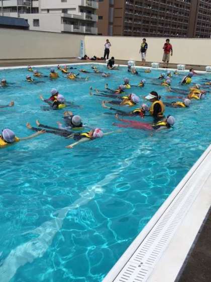 今日は、高学年の着衣泳とライフジャケット体験の出前授業がありました。淀川管内河川レンジャーの川嶋さんと平井さんに来ていただき、着衣で入水することの困難さや安全管理やライフジャケットを着用しての安全な姿勢などについてさまざまな河川での安全な活動について学習をしました。