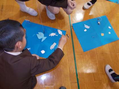 磁石・電気・ゴムのはたらきを利用して作ったおもちゃに、2年生の子どもたちも興味をもって楽しんでくれました。