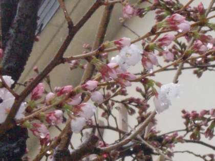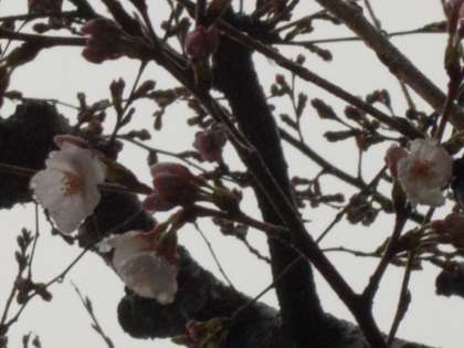 あいにくの雨ですが、文字通りの「花起こし」の雨になりました。講堂前のソメイヨシノとサトザクラが咲き始めました。