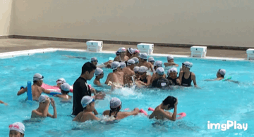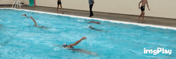 (動画1枚目)高学年は縦(25メートル)を使って泳ぎます。