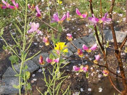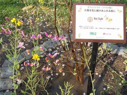 3月に4年生が梅田ミツバチプロジェクトの方と植えたミツバツツジが咲き始めました。梅田からミツバチが飛んできています。