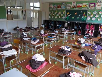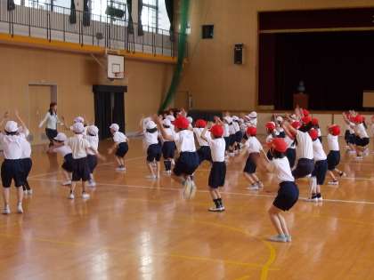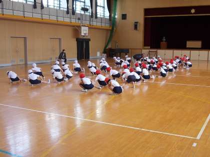 今日は講堂体育です。着替えた後はきちんと服をたたんでいます。みんなとても頑張っています。