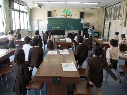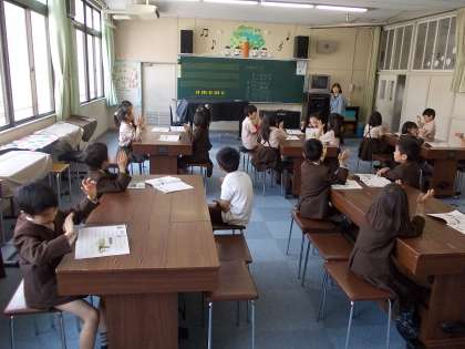 音楽で「こいぬのビンゴ」を歌いました。順番に手拍子が入って増えていきます。