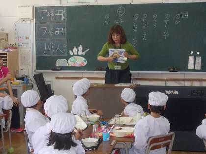 給食時間に全クラス、順番に回っていきます。今日は1年生でした。
