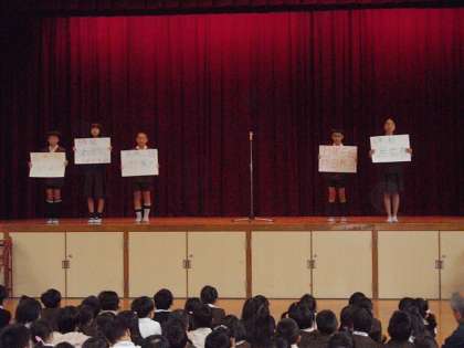 まず、校長先生から認証状をいただき、ひとりずつ決意を述べました。