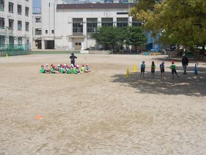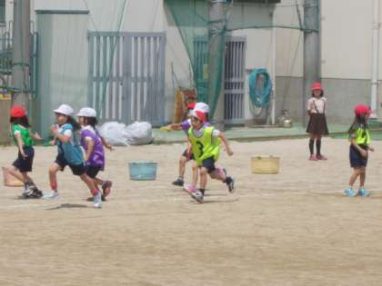 バトンを使ってリレーの学習をしました。みんな元気いっぱい応援して走りました。