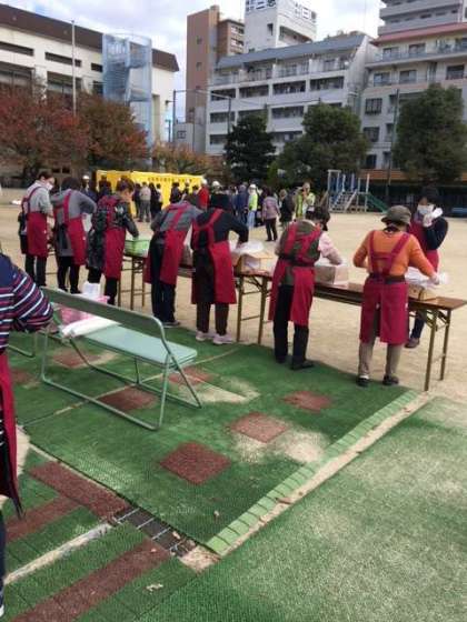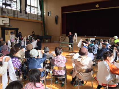 また、その他にも、中津小学校の子どもたちも何人かいて、保護者の方と一緒に体験をしていました。参加者には、アルファ米の炊き込みご飯や救助物資が渡されていました。