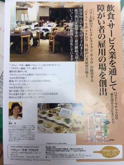 昨日、PTA人権啓発活動委員会の主催で谷町2丁目にあるフレンチレストラン「ル・クロ・ド・マリアージュ」で人権講座が行われました。参加者は28名で、まずは4階のチャペルのようなホールで、オーナーの黒岩功さんから、「食と障がい者雇用、働く環境と人を大事にする経営の考え方」等のお話をお聞きしました。黒岩さんのお話から、障がい者の人を雇用し、共に働くことで、お互いに学ぶ事が多く、その家族も喜び、周りのキャストも変わり、ユニバーサル(すべて同じ)という観念が職場に確立されるという経営の概念がわかりました。また、自分の劣等感いっぱいだった生い立ちから、どうしてこの職業をめざしたかをお聞きすることで、「自尊感情」や「違いを良さとして認めていく」子育ての大切なポイントがわかった参加者の方も多かったようです。