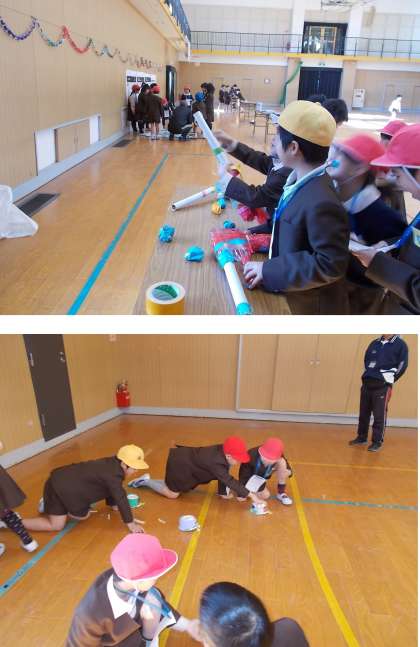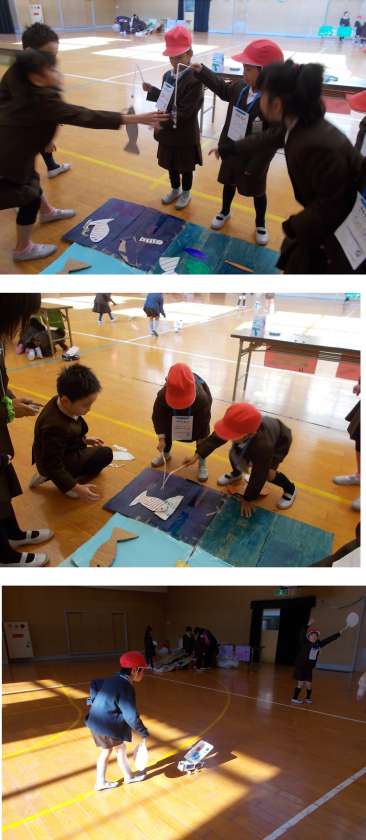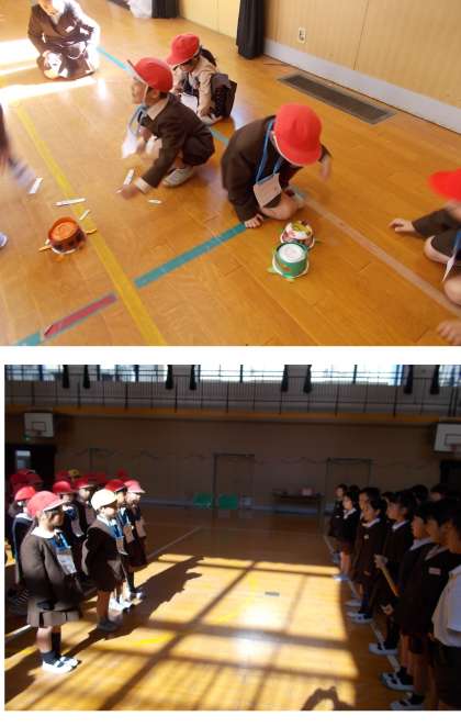 2年1組が「おもちゃランド」を開き、1年1組を招待しました。