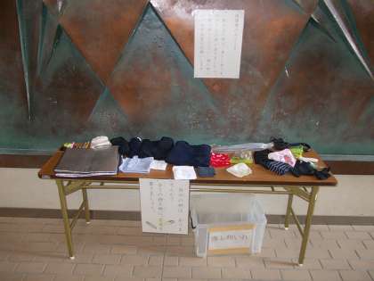 玄関ホールに、名前のない落し物が並べてあります。