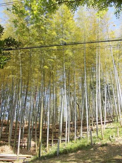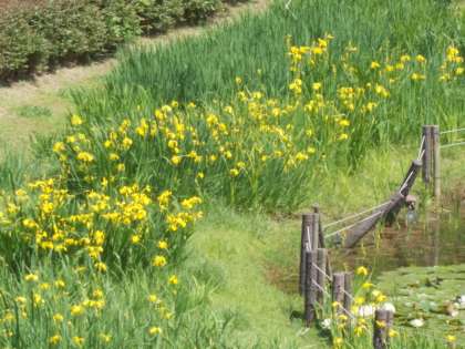 キショウブが満開で、竹林ではタケノコが出ていました。