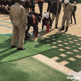 (動画2枚目)水消火器体験です。昨年より、グレードアップしていてビックリです。的がよりリアルになっていました。
