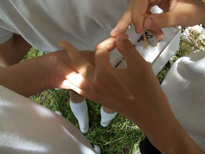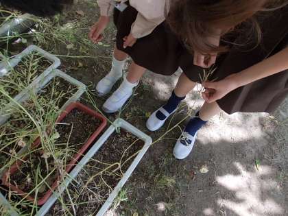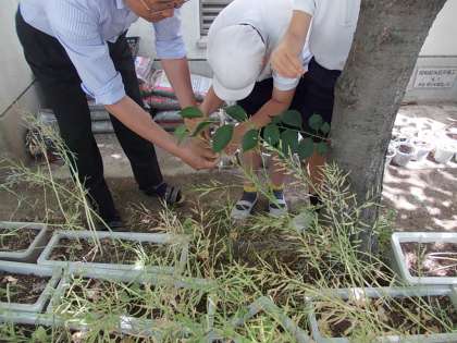 昨年の3年生が植えたナノハナの種取りを、環境美化委員会の人にしてもらいました。