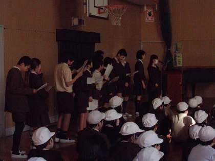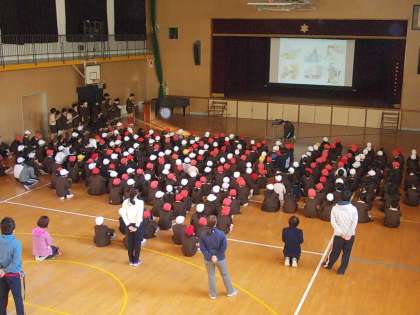 学校給食の歴史や、給食に関するクイズを発表しました。