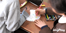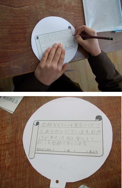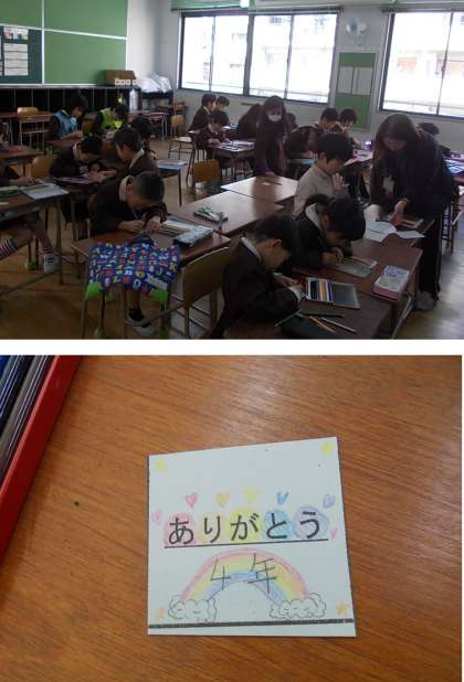 リハーサルの後、なかよし班の教室へ移動し、プレゼント作りをしました。