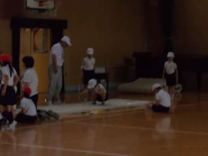 初めてのスポーツテスト。今日は、立ち幅跳びをしました。何事にもチャレンジしています。