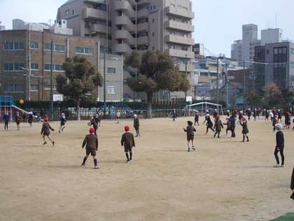 昼休み、雪がちらついていました。寒かったですが、元気に遊ぶ子ども達です。