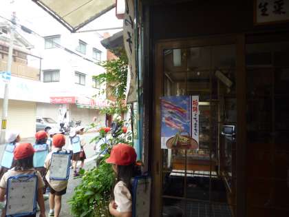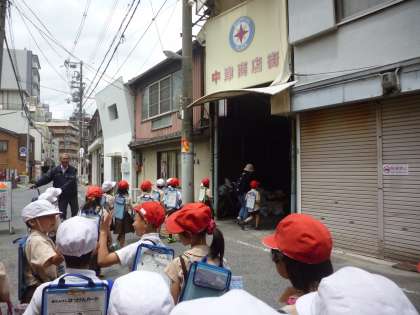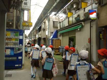 3丁目の魚屋さんの店先をのぞきながら、中津商店街をぬけました。見守りたいのおじさんに声をかけてもらい、「町たんけんしてるねん」とうれしそうに答えていました。今週、道徳の時間、「見守りたいのおじさん」の学習をしたことを思い出していました。