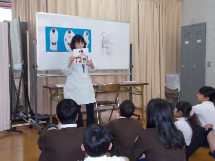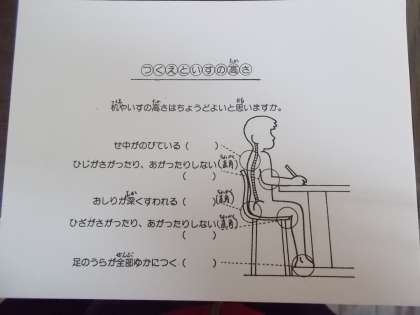 体重測定の時、1〜5年生は一人一人自分の学習中の姿勢をふり返るようにしました。