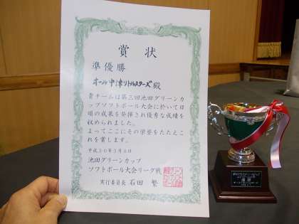 第3回池田グリーンカップソフトボール大会 準優勝。