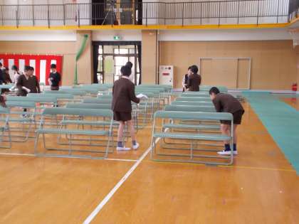 講堂の準備の後に新2年生がお迎え演技の練習をしました。