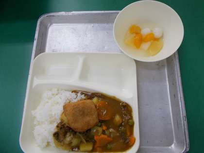 今日の給食はカツカレーでした。