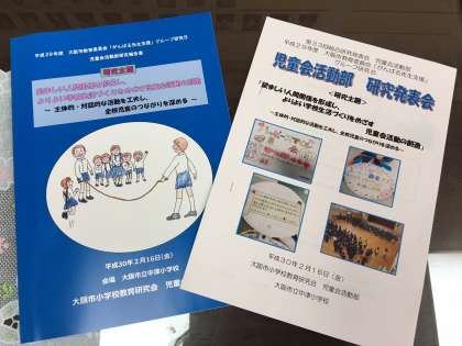 本校を中心に大阪市教育研究会の児童会活動部が取り組んでいる「がんばる先生支援」の29年度の研究が、最終の選考で「優れた研究 15グループ」の1つに選定されました。本研究の最終発表会は、2月16日に本校で行いました。