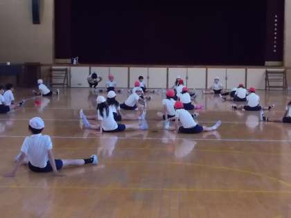 画像は5年生20mシャトルランの様子です。少しずつテンポが速くなる音に合わせ、20mの間を往復し持久力をはかります。かなり体力をつかいますが、どの児童も目標にむけてがんばっています。