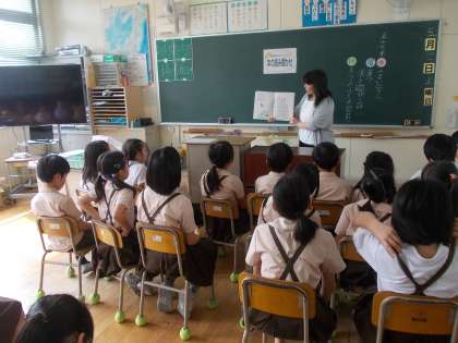 今日の朝は4年2組で図書館支援ボランティア「お・ひ・さ・ま」の方に読み聞かせをしていただきました。
